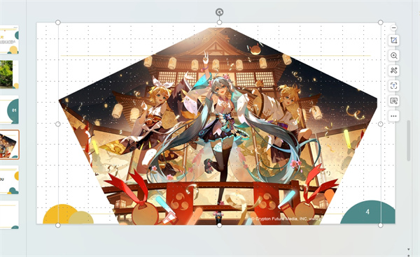 4、当图片被裁剪成所选形状后,您可以通过拖动边框来调整图片的位置和大小,确保所需部分在裁剪区域内。