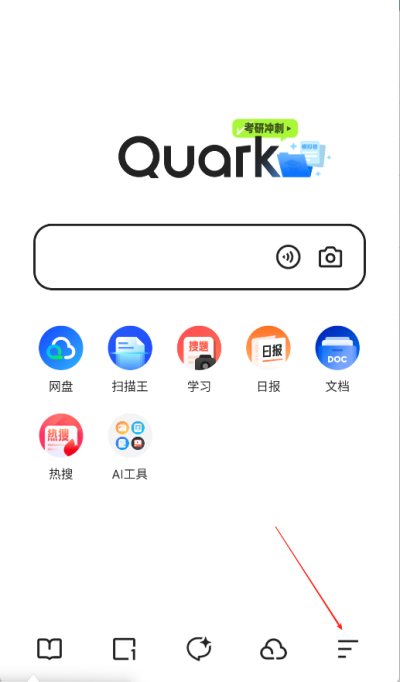 1、首先打开夸克浏览器app,进入软件首页后点击界面右下角的【三】功能选项;