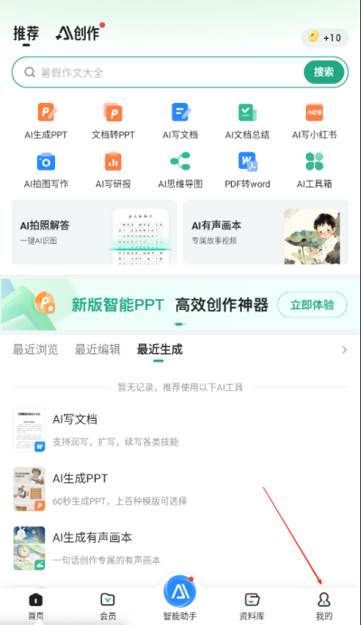 1、首先打开手机上的百度文库app,进入软件后点击界面右下角【我的】选项;