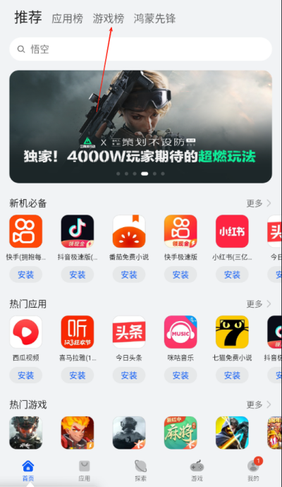 3、也可以直接在首页的位置点击上方的【游戏榜】选项,该游戏十分火爆,玩家可以直接在榜单中查找;